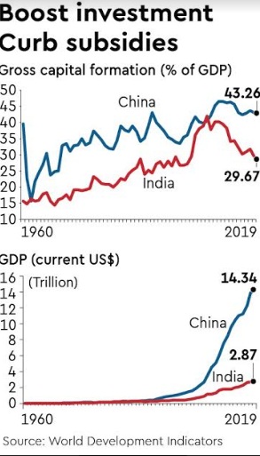 Central to India’s progress, then, is this issue of subsidies versus investment and the Punjab agitation is important to the extent that if subsidies can’t be reduced for even better off farmers – Punjab’s farmers are among the richest in the country – how can they be cut for others? If India gives a 90% subsidy on rice and wheat to two thirds of its population under the National Food Security Act, where will the government find the money to help the genuinely poor; even a Rs 1,000 per month transfer to just the poorest tenth of the population will cost Rs 168,000 crore a year. And how can even modest price deficiency payments for farmers be financed if Rs 4-5 lakh crore a year are spent on MSP and various subsidies even today? While input subsidies on agriculture add up to around 8% of agriculture GDP, public investment is a mere 2%.