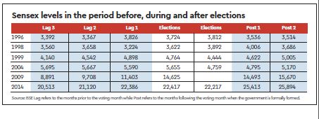 If the past trends are to be reflective of the future, then the index should remain largely stable in the next two months when the elections would be on. It would be surprising if this does not materialise as the elections outcome is still unclear, given that there are no clear indications of a single party getting absolute majority. Depending on how the final government is formed in terms of alliances, the Sensex could take a specific turn in June and July. Continuity in the regime would definitely resonate well for the market while any change will cause more speculation.