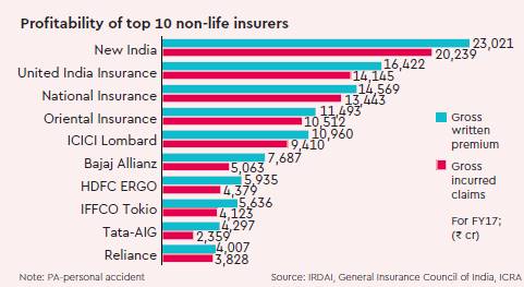 The general insurance industry reported its highest-ever year-on-year growth of 32% in premium collection in FY17 because of crop insurance. And in July, for the first time, private sector non-life insurance companies moved ahead of the four state-owned companies in premium collection.
