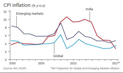 The Economic Survey released recently states: “The economy has undergone a transition—possibly structural and permanent—from high to low inflation in the last three years.” Inflation in India in the last four months has been hovering close to 2%, which is a historical low. To put it in perspective, average inflation in India for the last five years was close to 7%. Disinflation trend witnessed in the country is being mirrored globally, which brings us to the pertinent question whether we have reached a prolonged phase of low global inflation. If the current levels of low inflation are the new normal, then the policy makers need to take that into account.