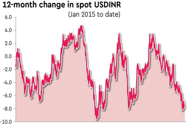 Of course, trying to figure out where the rupee will go is a foolishness, best suited to deep discussions after several whiskies. What is more important is to determine how you should manage your risk. The key point to note is that the forward premiums have come down sharply over the past six months and are today just about Rs 2 for 12 months. Clearly, the standard approach of hedging a significant part of exports forward has become a non-starter, particularly as it is more than possible that the rupee has reached-or is close to-a bottom.