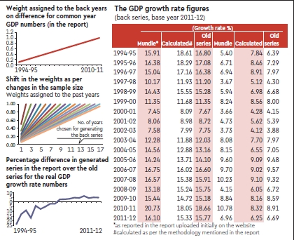 The report of the committee on real sector statistics—constituted by the National Statistical Commission, that gave the back series estimates of the GDP—appeared for a brief period on the MoSPI website. We are lucky to have a copy of the report with us before it was removed. The report gave back series data for GDP as far back as 1993-94 with 2011-12 as the base year. The back series numbers were generated by its sub-committee on linking old and new GDP series. The numbers have created some political controversy regarding GDP growth in India over the performance of UPA and NDA coalition governments during the last two decades. However, the debate has missed the scrutiny of suitability of the statistical methodology used for generating the series. Reliability of the series depends on the methodology employed. Given the potential use of these numbers by researchers and policymakers, a robust statistical approach to generate the series is amust. The attempt here is to critically evaluate the methodology employed to arrive at the back series estimate of GDP.