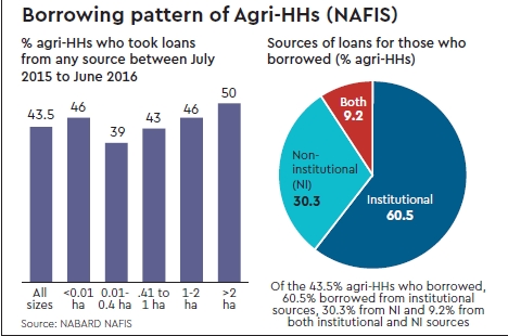 Let us now consider the loan-waiver option. As per NABARD’s financial inclusion survey (NAFIS), between July 2015 and June 2016, 43.5% of all agri-households (agri-HHs) took loans. Of these, 69.7% took institutional loans (60.5% took only institutional loans and 9.2% took both institutional and non-institutional loans). This means that about 30.3% (i.e. 69.7% multiplied with 43.5%) Indian agri-HHs took loans from institutions. A loan-waiver is thus likely to benefit only these 30%, or an even smaller subset of it, if certain conditions are imposed on loan waiver schemes. The remaining 70% of the Indian peasantry, who do not access institutional credit, will not benefit from this scheme. Such high rates of exclusion must be the singular most important failure of our banking system concerning financial inclusion.