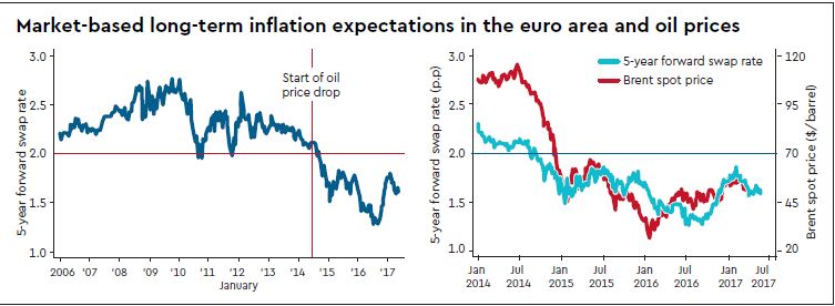 Going forward, the doubling of oil prices from the lows reached in 2016 has helped inflation recover somewhat in the euro area, but will not per se result in a sustained adjustment in price dynamics, nor will it lift long-term inflation expectations. Our results suggest that, in order to achieve a sustained adjustment of both actual and expected inflation, a firming of the recovery is needed. In turn, this arguably requires that monetary policy be perceived as strongly and credibly committed to this aim.