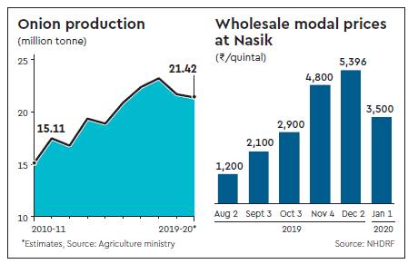 An official with the consumer affairs department said that while the stored rabi onion lasts till kharif crop arrivals in November, even a fortnight of delay creates supply constraints in the market, and leads to a spike in prices. The official said that a decline of 27% in kharif output could not have been replaced with imports from Egypt and Turkey.