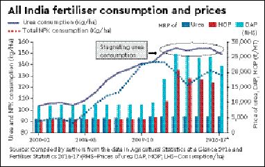 However, it is also true that for the last five-six years, urea consumption on per ha basis has stagnated in India and overall N, P, and K consumption/ha has also shown some decline (see accompanying graphic). The question is: Was this due to dramatic changes in pricing of DAP and MOP, resulting from the Nutrient Based Subsidy (NBS) scheme, or due to policy of SHCs or neem-coated urea (NCU), or because of falling profitability in several crops for the last four years? May be, it is a mix of all these factors.