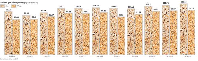 Although there is good news in store for the government as output is set to increase on back of increased rabi harvest, there are concerns regarding storage that it would have to address. So, as output for wheat and rice this season hits a record high of 101.2 and 115.63 mt, respectively, excess stock of food grains will mean that it will be difficult for FCI to do more procurement or make space for additional grain, as CACP points out in a report. The problem goes beyond FCI procurement.
