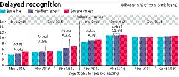 Even in the December 2015 FSR, RBI was projecting a 4.9% NPA level for March 2016 and a 5.2% level for September 2017 in the baseline scenario. The actual NPA levels, it turns out, was 7.6% in March 2016 and 10.2% in September 2017. That RBI should have got it so wrong (see graphic) is not surprising since the Credit Suisse report of October 2015 was talking of problem loans being as high as 16.6% of total loans even as the gross NPAs—as shown by RBI data—was a mere 4.5%.
