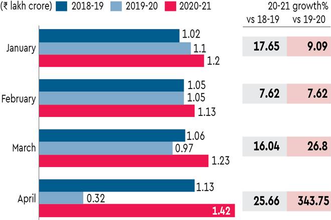 The GST digital compliance and tax administration framework is unprecedented in its scale and ambit, and forms the backbone for the reform. Achievements on this front are exemplary and will be emulated globally. Last year, it was visionary of the revenue secretary to push ahead with the digital agenda through the pandemic, despite protests. E-invoicing for large taxpayers having turnover above Rs 100 crore was implemented. This, coupled with a proactive use of analytics, has enabled the administration to check evasion. The collection efficiency has significantly improved. The Q4FY21 collections indicate a 15-20% growth compared with FY 19 (see graphic). Stronger collections should provide flexibility to focus on the necessary structural reforms.