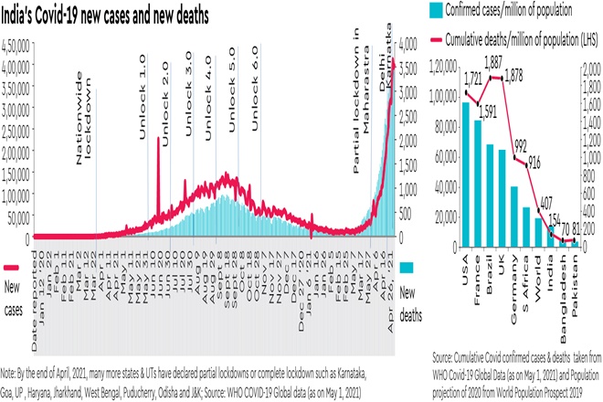 What can be done now? First and foremost is calming the panicked public. Our elected representatives need to be in their constituencies, calming and helping people, rather than holing up in their comfy homes. National leadership has to have a war-room, comprising top medical experts, corporate leaders that can ramp up the supplies of oxygen and necessary drugs, logistics players to deliver the last mile, etc. They need to address the nation at least twice a week and share the truth of the disease, the testing, the rate of infections and deaths taking place. People are losing trust in politicians and bureaucrats who are trying to hide the reality. We are losing more people to Covid than we have ever lost in any war. So, the response has to be as it is in times of war, as ICRIER chairman Pramod Bhasin said in one of his latest interviews. If there is any consolation, it is that deaths in India per million population is still way behind Brazil, the UK, the US, France and even the world.
