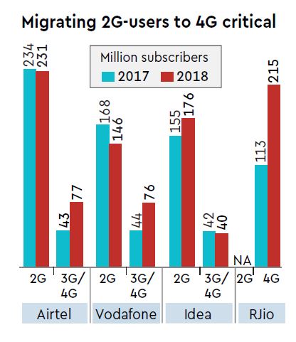 The reason why all telcos need to emulate RJio’s strategy is two-fold. For one, if customers are being offered a 4G experience at a price not much higher than what they are paying today for 2G, significantly large numbers would be tempted to move—whether they move to RJio or upgrade their phones while remaining on the Airtel/Vodafone/Idea networks remains to be seen. If Airtel/Vodafone/Idea are not able to match the offer on 4G handsets, RJio can walk away with all those wanting to make the switch. Given 2G customers account for 40% of Bharti Airtel’s revenues (and 70% of customers) and 52% for Vodafone-Idea (75% of customers), that is not a chance anyone wants to take