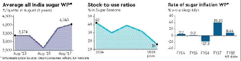 If the matter is assessed on the basis of sugar inflation of 39% in 2016-17 and 8.44% as of July in the financial year 2017-18 (Economic Advisor report date August 14, 2017), then there is a case of relaxing terms of import for 2 MT of sugar to moderate prices.