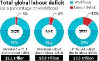 Globally, the study reveals that the US, Japan, France, Germany and Australia would face the largest threat in the near term, with a combined opportunity cost of $1.876 trillion by 2020. The Asia Pacific (APAC) region would face a talent deficit of 47 million workers. The region is expected to have an imminent talent deficit of over 12.3 million workers by 2020, rising to a shortage of 47 million workers by 2030. The shortage could lead to $4.238 trillion in unrealised annual revenue loss if the problem is not addressed, the report says. Labour shortages in global financial and business services are the most acute, with a potential deficit of 10.7 million workers globally by 2030.