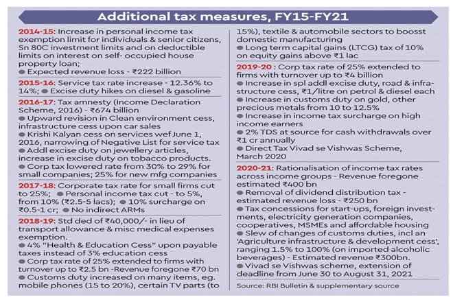 To illustrate the issue at hand, the main direct and indirect tax changes in successive budgets from FY15, with some key out-of-budget measures, are summarised in the table. As we can see, changes in tax rates and the base, the allowable exemptions, new additions and other such are numerous and far-reaching.