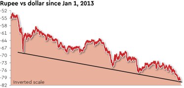 Even as the Reserve Bank of India (RBI) continues to claim it is not trying to defend any particular level of the rupee and only intervenes to manage volatility, the battle for 80 appears to be fully joined.
