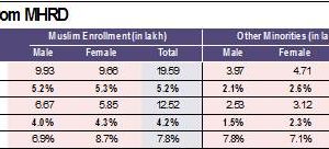 Low GER amongst the Muslim community across India, at 9.7, indicates the need for a different approach. A special drive to increase capacity and number of schools and colleges in Muslim-dominated areas is necessary. Further, focused training toward competitive exams for government jobs and skill development programmes such as National Skill Development Corporation (NSDC) will provide opportunities for educated Muslims to utilise their skills in the workforce. The central government and state governments, where Muslims are in higher numbers, must make it a mission to improve enrollment in the community. Targets to accelerate GER over the next five years must be set and executed. The ministry of minority affairs has sufficient budget of `4,700 crore year-on-year already allocated to implement this. Priority to Muslims’ higher education, especially women, must be executed in this budget.