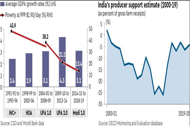 Agriculture strategy appears in the chapter on inclusive growth. During the UPA period, from 2004-05 to 2013-14, it was premised that inclusive growth is not feasible unless agriculture grows at about 4% per year, while the overall economy grows at about 8% per year. The reason was simple: More than half of the working force at that time was engaged in agriculture, and much of their income was derived from this. But, many political heavy weights, even within the Congress, did not believe that agri-growth could reduce poverty fast enough.