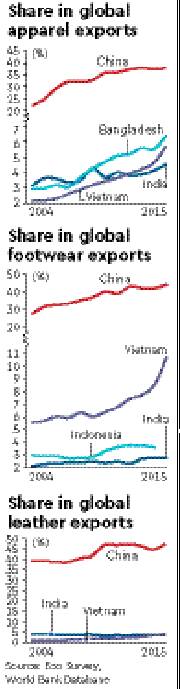 Now, add to this poor quality (the most important part of any purchase), the costs of poor infrastructure—road transport in India costs $7 per km vs $2.5 in China and it takes 21 days to deliver from JNPT to the US east coast vs 14 days for China—and other DoingBusiness indicators, and it is easy to understand that even as China vacates its low-end manufacturing, it is others that are grabbing the space—Bangladesh and Vietnam in the case of apparel and Vietnam and Indonesia in the case of leather and footwear (see graphics). There isn’t much data about the share of Chinese products in Indian markets except in areas like mobile phones, but in an open-economy framework, if you aren’t export-competitive, you can’t be import-competitive either.