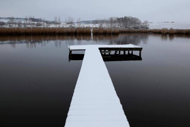 A snow-covered pier is seen on a lake near the village of Etyek, Hungary. (Image: Reuters)