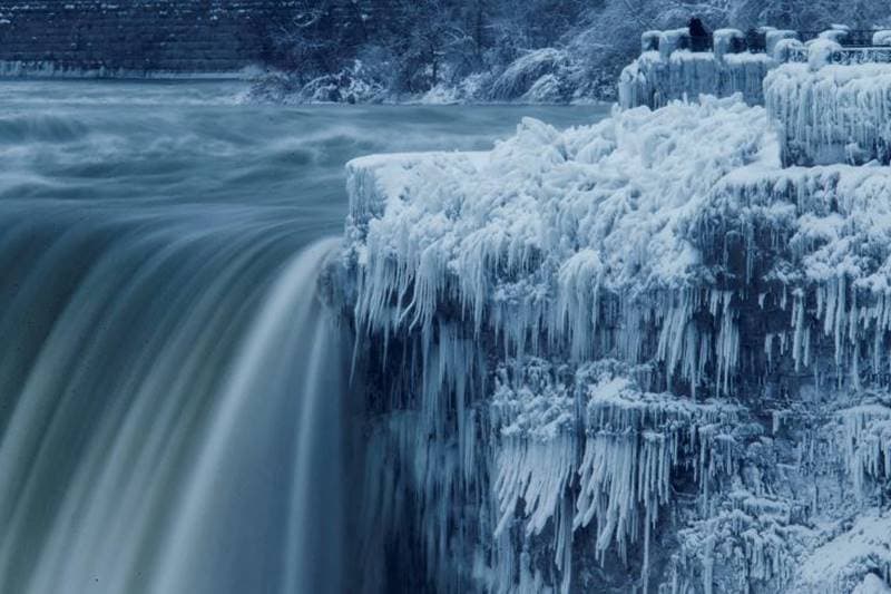 A lone visitor takes a picture near the brink of the ice covered Horseshoe Falls in Niagara Falls, Ontario, Canada. (Image: Reuters)