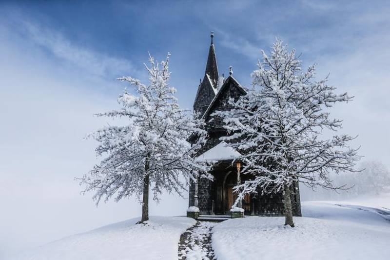A snow-covered chapel is seen after the first snowfall of the season in the western Austrian village of Tulfes, Austria. (Image: Reuters)