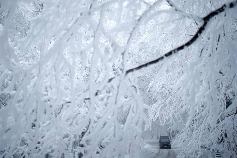 A car is seen behind snow-covered trees outside Tbilisi, Georgia. (Image: Reuters)