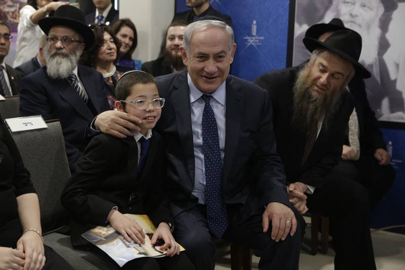 The Israeli prime minister thanked Moshe for hosting him and showing him his room in the Chabad House. (AP Photo)