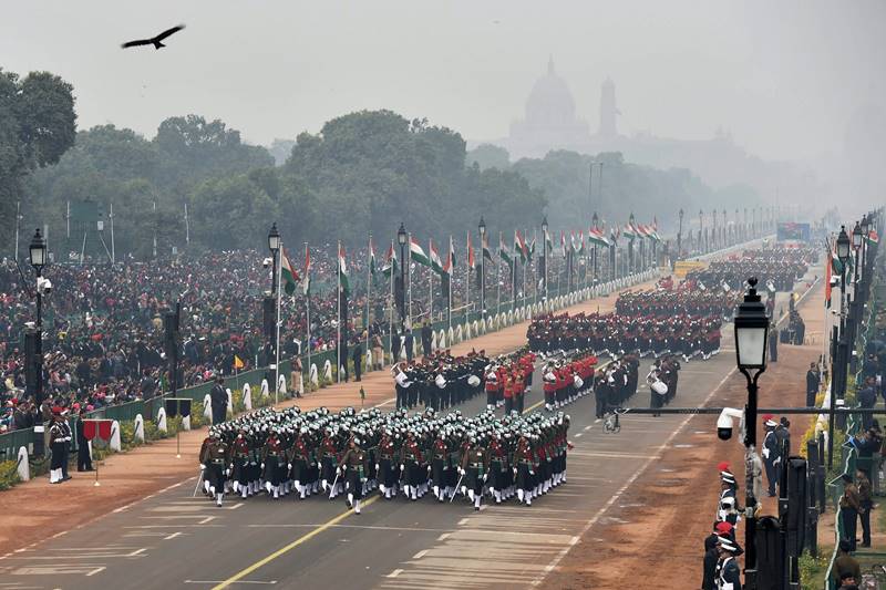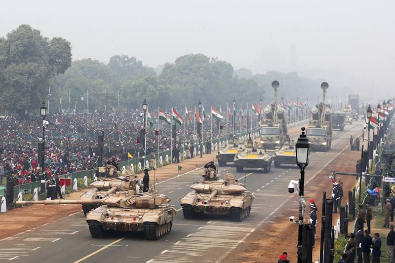 India celebrates Republic Day on January 26, highlighted by a march past by different branches of the military as well as a display of arms and missiles. (AP Photo)