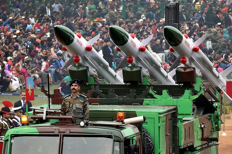 India's Akash missiles on display at Rajpath during the full dress rehearsal for the Republic Day Parade. (PTI Photo) -
