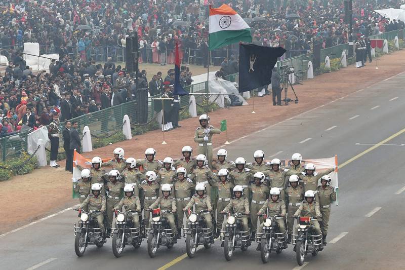 An all-women team of BSF performs on motorcycles during full dress rehearsal for the 69th Republic Day Parade at Rajpath. (PTI Photo) Border Security Force's camel-mounted soldiers march during the full dress rehearsal for the 69th Republic Day Parade at Rajpath. (PTI Photo) Today, on the occassion of full dress rehearsal for the 69th Republic Day Parade an all-women team of BSF performs on motorcycles at Rajpath. (PTI Photo) Contingents march past at Rajpath during the full dress rehearsal for the Republic Day Parade, in New Delhi. (PTI Photo) -