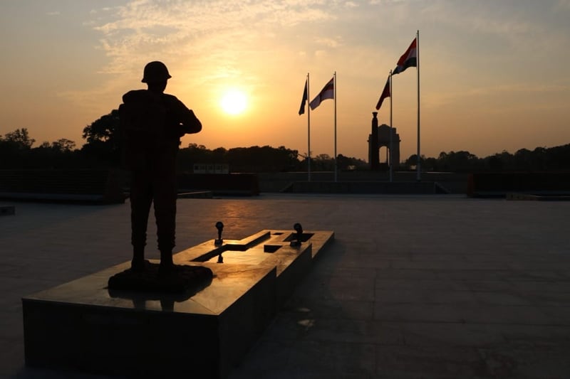 The National War Memorial (NWM) at India Gate is built and it is in memory of the war heroes of Indian forces. (Image source:National War Memorial/twitter) It has been constructed to honour around 26,000 soldiers who laid down their lives in war and operations since India got independence in 1947. (Image source:National War Memorial/twitter) The complex is partly subterranean. According to rules the architecture should not disturb nearby vistas. 22 trees were removed to develop the area for which 715 trees were planted. (Image source:National War Memorial/twitter) -