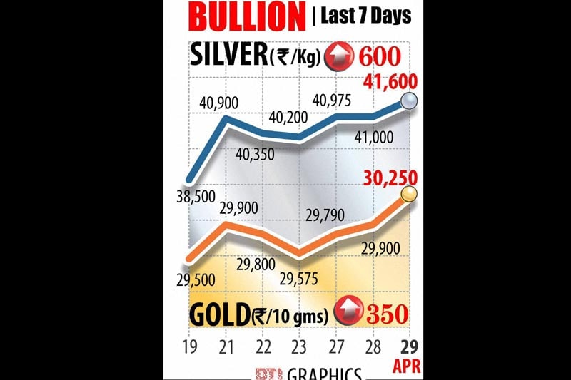 Rallying for the third straight day, gold climbed by Rs 350 to trade above the Rs 30,000-mark at Rs 30,250 per 10 grams, its highest level in almost two years at the bullion market on Friday, largely in tandem with firming trend overseas. (PTI Graphics)