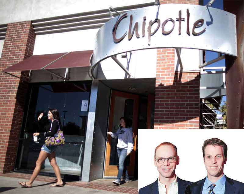 <b><br>Montgomery Moran and Steve Ells, co-CEOs, Chipotle</b></br> Earlier this year, Ells called the burrito chain’s fast-food competition “a joke”. Ells has earned the bragging rights. In the past three years, Chipotle has had 20.5% annual sales growth, and its stock has soared 99%. This year, he and co-CEO Monty Moran combated rising beef, avocado, and dairy costs, but still managed to rake in the money.
