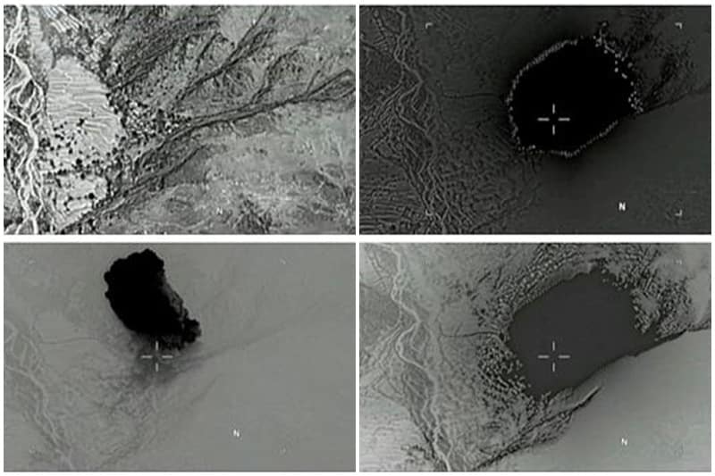 Also on Saturday, Khogyani said a district leader and three others were wounded when their vehicle was targeted by a bomb. One of the wounded was Ghalib Mujahid, Bati Kot district chief, he said. <br><br>"The district chief and others are out of danger and are not in life-threatening condition," he said. Last November, Mujahid was attacked by a sticky bomb attached to the vehicle and he was wounded and his driver was killed. <br><br> (Image: Still image taken from a video released by the US Department of Defense/Reuters)