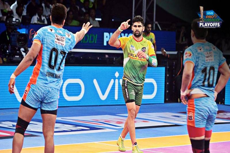 1) Pardeep Narwal- The Dubki King of Pro Kabaddi League (PKL) Pardeep Narwal has been in rock-solid form in the fifth edition. The Patna Pirates captain was born in Rindhana, Sonepat, Haryana, and holds the maximum number of points, in a single season of PKL. The record was previously held by Anup Kumar with 155 points. In the match against Puneri Paltan on Monday in eliminator 2, Narwal led from the front to score a historic 34 points, the most by any raider in Pro Kabaddi League, and also became the first man to reach 300 raid points in Season 5. He has 350 raid points to his credit so far. (Twitter) -