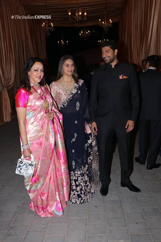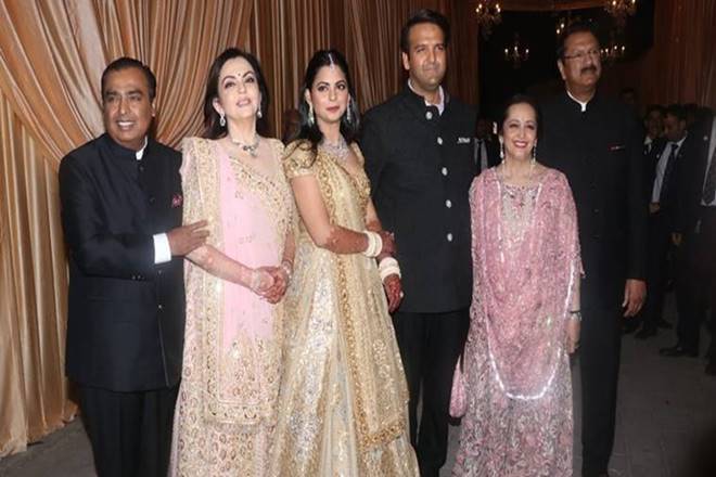 The grand celebration of Isha Ambani and Anand Piramal wedding continue with the reception party at Jio Gardens in Mumbai. Prominent politicians, Bollywood celebrities and sports persons attended the function. Lieutenant Governor of Puducherry Kiran Bedi, Congressman Digvijay Singh, veteran actress Hema Malini, badminton star Saina Nehwal, singer Adnan Sami, Tamil Nadu Deputy Chief Minister O Panneerselvam, Former India cricketer Zaheer Khan along with his actress wife Sagarika Ghatge and Boman Irani were among the guests at the party.