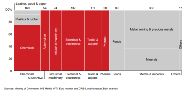Sectoral advantages: India’s advantage in Pharma, Chemicals, Industrial machinery, Electronics, Automobile, Textiles