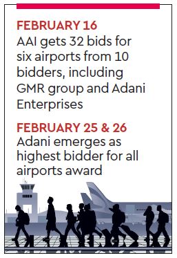 Adani Enterprises had bagged the rights to operate, manage and develop airports at Ahmedabad, Jaipur, Lucknow, Thiruvananthapuram and Mangalore by offering the highest per-passenger fee (PPF). PPF is paid by the developer to state-owned AAI for every domestic and international passenger handled at the airport.