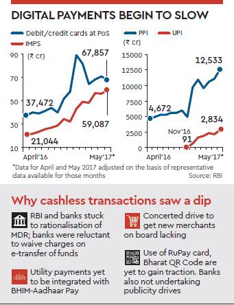 The government is understood to have laid down targets for cashless transactions though this could not be immediately confirmed. Sources said, by end September, banks are to acquire 30 merchants per branch, who transact digitally, irrespective of the size of the bank or branch.