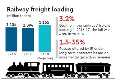 The railways had witnessed a 4.9% annual fall in loading of cement, excluding clinker, on an originating basis in 2015-16 and a 3.2% decline in 2016-17. Its cement loading in 2016-17 was 71 million tonnes, just over 6% of total freight carried in the year.