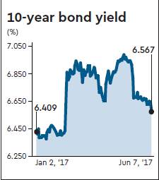 Bonds rallied to a four-month high on Wednesday after the Reserve Bank of India sharply reduced inflation projections for the current fiscal, raising hopes of a rate cut .The 10-year 6.79%, 2027 benchmark bond yield closed at 6.57%, 7 basis points lower than Tuesday’s close, and the lowest since February 7. The 7-basis-point fall is the biggest intra-day drop since May 16, when it fell 14 basis points. “Nobody is talking of a rate hike anymore and that caused today’s relief rally. As we move towards the inflation data in July and the next policy in August, the bond yields would point towards a rate cut,” said Jayesh Mehta, MD, Bank of America Merrill Lynch. Traders said the immediate upside available to the bonds is limited since they they have already rallied significantly in the last few weeks, adding that the benchmark yield could fall another 5-7 basis points over the next week. The benchmark yield has fallen 42 basis points since the beginning of May. The market will keenly watch the next two inflation prints, expected in mid-June and mid-July, since the RBI’s next action will depend on this data to a large extent. While the market is hopeful that inflation will move south in coming months, it is important that the RBI’s inflation modelling follows the same trajectory, traders said. In April, the consumer price inflation dropped to a record low of 2.99% from a nearly five-month high of 3.89% in March because of a lower base effect and lower food prices.