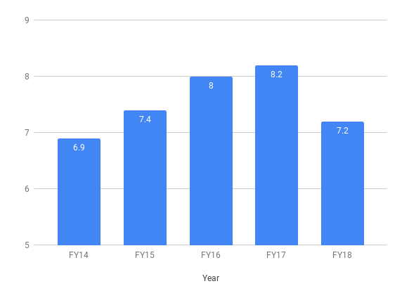 After the recent upward revision of the Gross Domestic Product (GDP) numbers for the financial years 2016-17 and 2017-18, the growth rate in the current financial year may come down to 5.9%, a report has shown. The Central Statistics Office (CSO) on Thursday revised GDP growth rate for FY18 and FY17 by 50 and 110 basis points to 7.2% and 8.2% respectively.