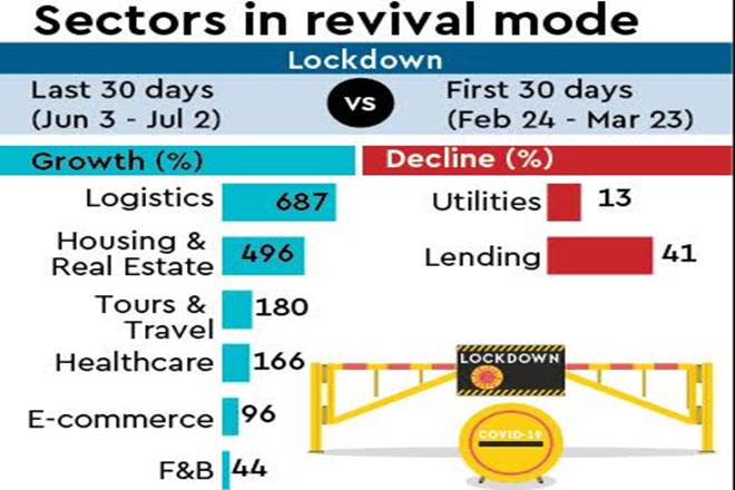 Over the 30-day period between June 3 and July 2, digital payment transactions rebounded 23%. Transactions are still not back to pre-Covid levels on Razorpay’s platform as in the 101-day period since March 24, they are still 12% lower. The sectors that have led the rebound in payment activity are logistics (up 687%), real estate (496%) and healthcare (166%). The two segments which have seen a decline in transactions are peer-to-peer (P2P) lending and utilities, which fell 41% and 13% respectively, as compared to the first phase of the lockdown.