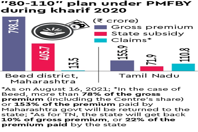 According to sources, the Centre has written to both Tamil Nadu and Madhya Pradesh, which have adopted Beed formula in many districts of the states, stating that “the reimbursements above state share of subsidy will be refunded to government of India as well” in case claim to premium ratio is very low. The Centre, in July, had written to states seeking their views on including the ‘Beed formula’ as an option under the PM Fasal Bima Yojana amid several states developing cold feet on the flagship scheme.