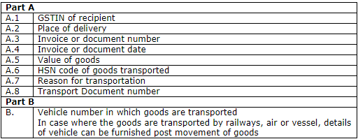 If the goods are transported for a distance of up to 50 kms, within the State or Union territory from consignor’s business place to the transporter’s place, details of conveyance in Part B is not mandatory.