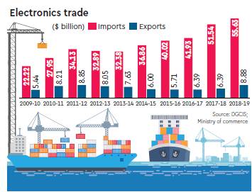 As for the overall electronics imports, although the pace of rise slowed to 8% last fiscal from 23% in the previous year, in absolute term, the net imports (after excluding exports) inched up to $46.8 billion in FY19 from $45.2 billion a year before, proportionately inflating overall goods trade deficit that touched $176.4 billion last fiscal, compared with $162.1 billion in FY18.