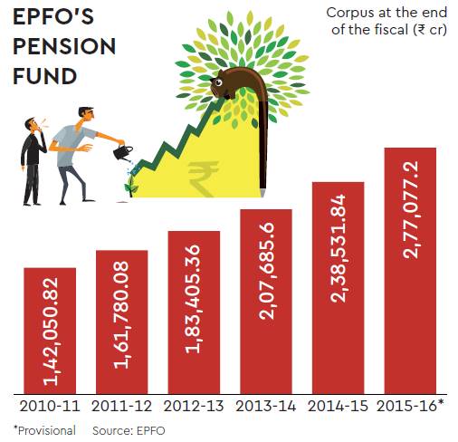 In the year 2015-16, while EPFO garnered around Rs 54,000 crore in collections and interests on the previous year’s accumulations, it paid out only around Rs 13,545 crore to pensioners and those who opted for withdrawals, which is paid on exit from service or on superannuation. There has always been a big gap between the amounts credited to the pension fund and pension outgo, giving EPFO a good cushion and income. While in 2010-11, the total pension outgo was Rs 7,641 crore, it was Rs 13,545 crore in 2015-16.