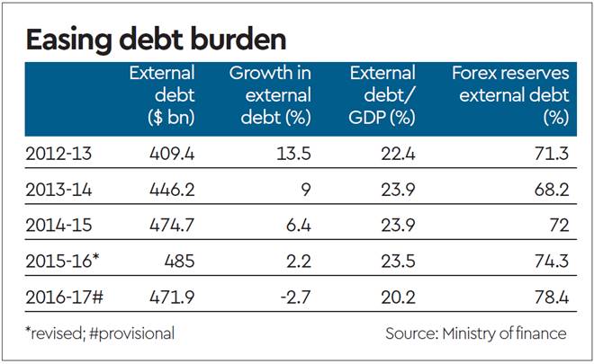 “India’s external debt has remained within manageable limits and the external debt situation has improved in 2016-17 over 2015-16 as indicated by the increase in foreign exchange reserves cover to debt to 78.4% from 74.3%, and fall in the external debt-GDP ratio to 20.2% from 23.5%,” the ministry said in the statement.