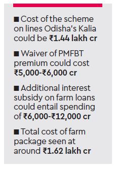 So the total cost of the farm package is seen at around Rs1.62 lakh crore or thereabouts. It is not clear whether the Centre alone will foot the Bill or it expects the states to share the burden.