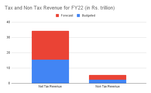 “Actual GTR (gross tax revenue) collections in FY22 is Rs 13.64 lakh crore, compared to Rs 8.76 lakh crore in FY21 and Rs 10.52 lakh crore in FY20 in the same period. A conservative estimate for FY22 totals is Rs 25.1 lakh crore in GTR. This indicates nearly Rs 3 lakh crore over the BE FY22 of Rs 22.2 lakh crore,” TV Mohandas Pai, the chairman of Aarin Capital Partners and Nisha Holla, technology fellow at C-CAMP, said in an op-ed in Financial Express earlier this month.
